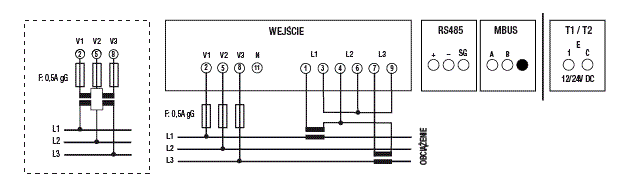 Wejście prądowe: PRZEZ PRZEKŁADNIK